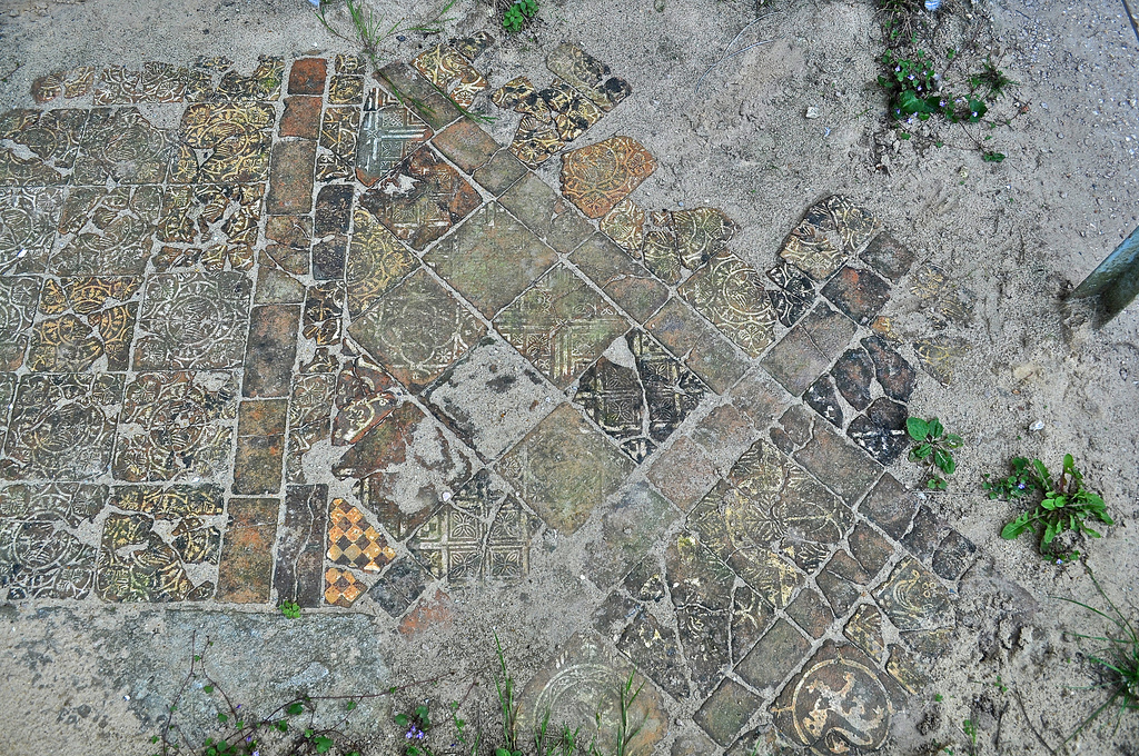 These medieval tiles survived as they lay undiscovered under the courtyard of the Tudor mansion – until excavations in the 1920’s unearthed them. They are very similar to other nearby abbeys suggesting they were all made in the late 13th century by the same team of tile makers.