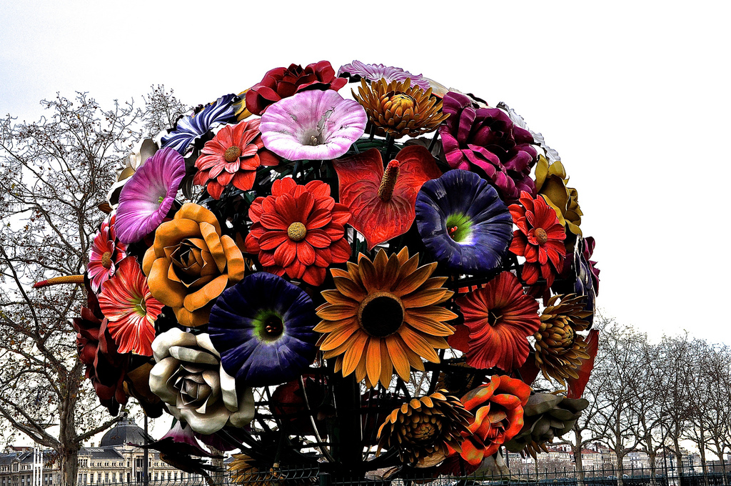 The first is located in Rhone-Alpes, seen on a visit to Lyon last year, just off Antonin Poncet Square. It is an 85 “flower-tree” – a bouquet of oversized and brightly coloured flowers created by the Korean artist Jeong Hwa Choi.