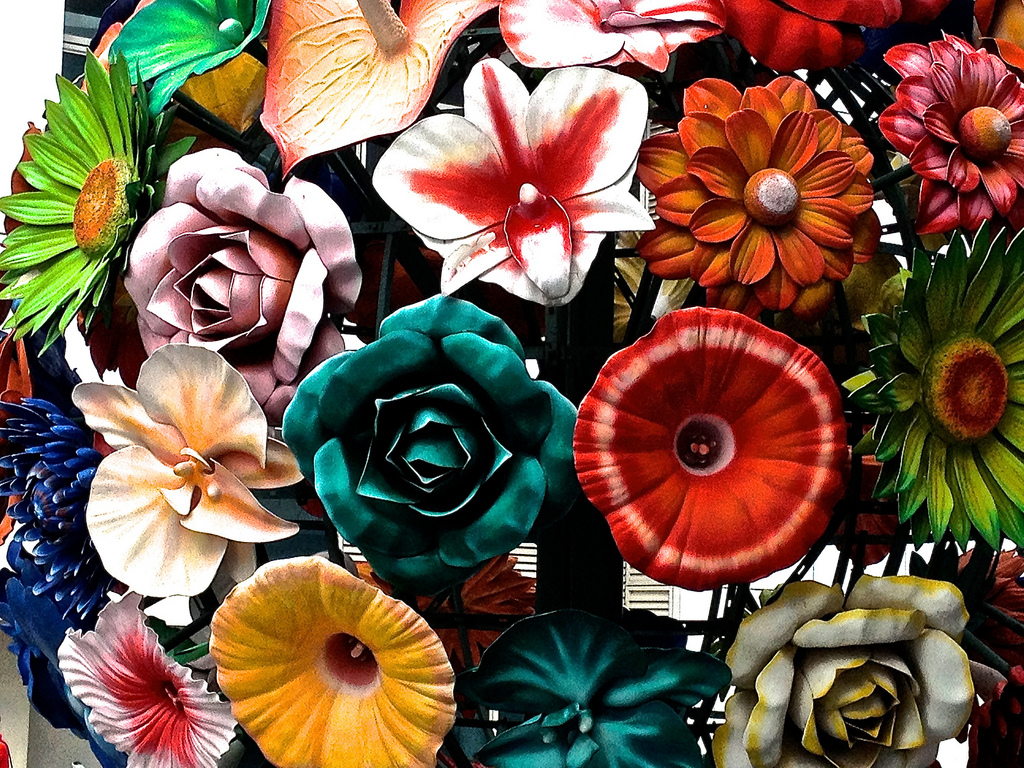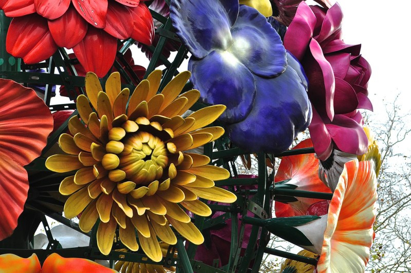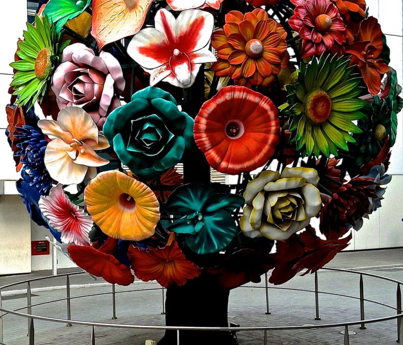 As a lover of nature and of art, imagine my fascination with two floral sculptures which I have recently seen on my travels – on two different continents! They share the same artist and sadly, the same overcast weather!