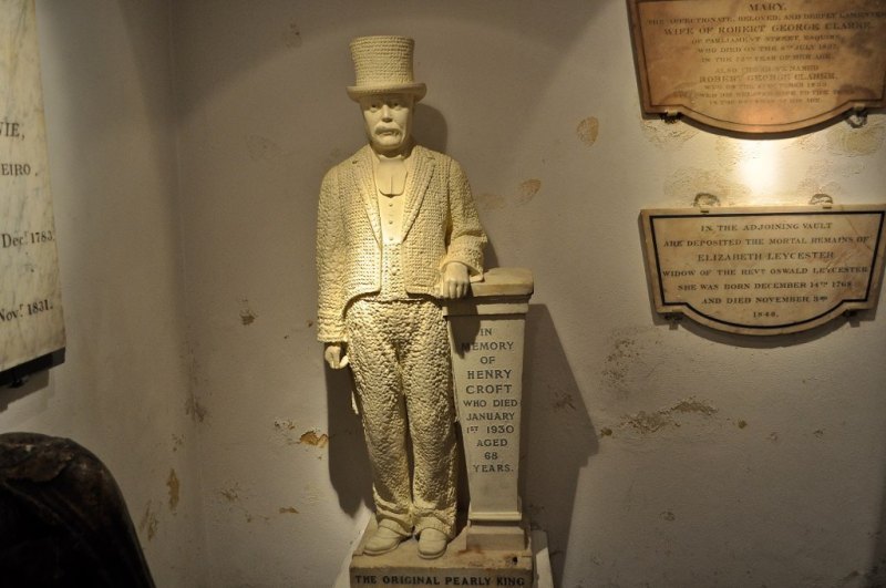 Historic tombstones lie underfoot whilst to the rear of the Crypt, a collection of carved memorials and even a statue to Henry Croft, the first Pearly King, lies waiting to be explored.