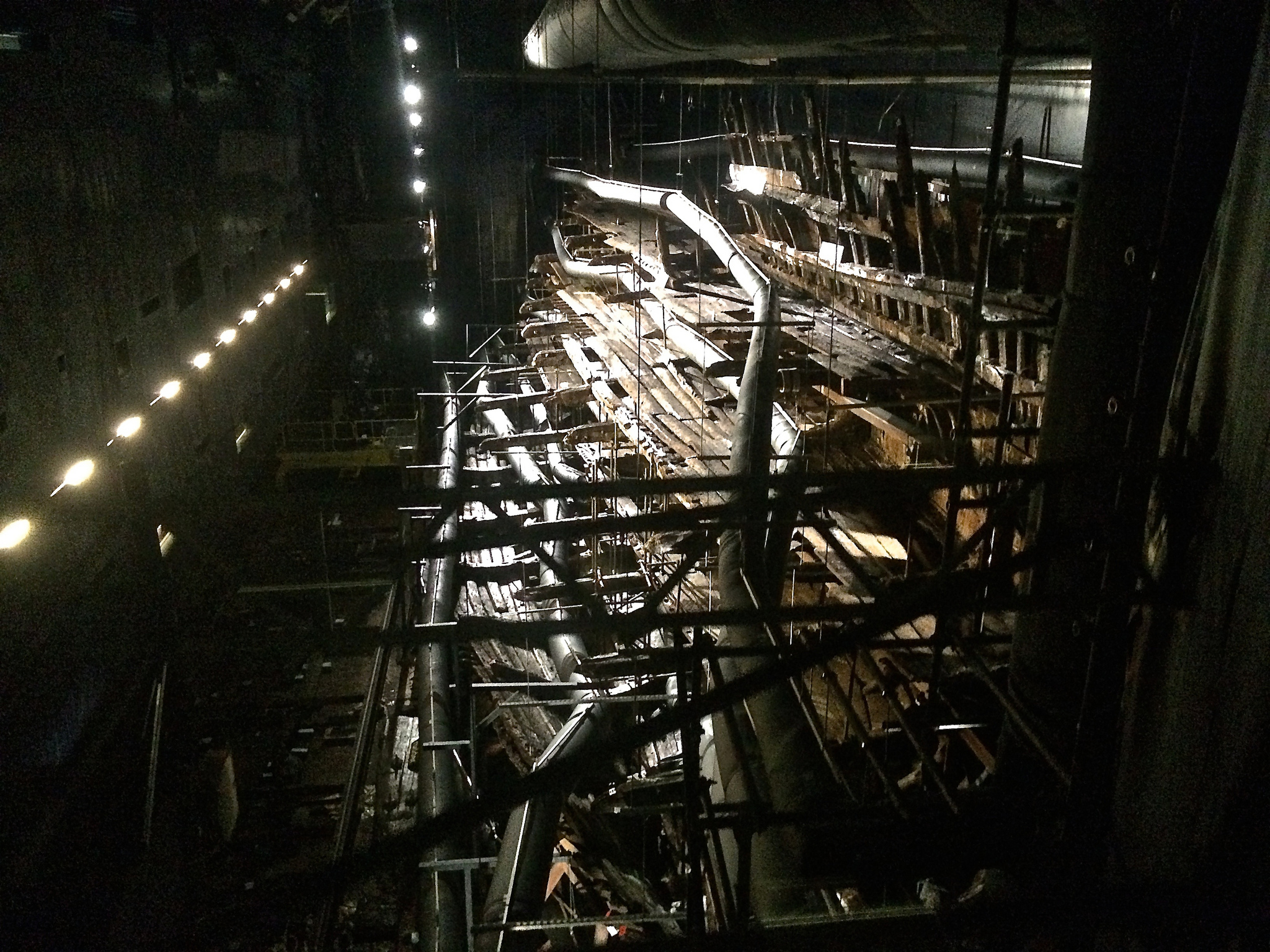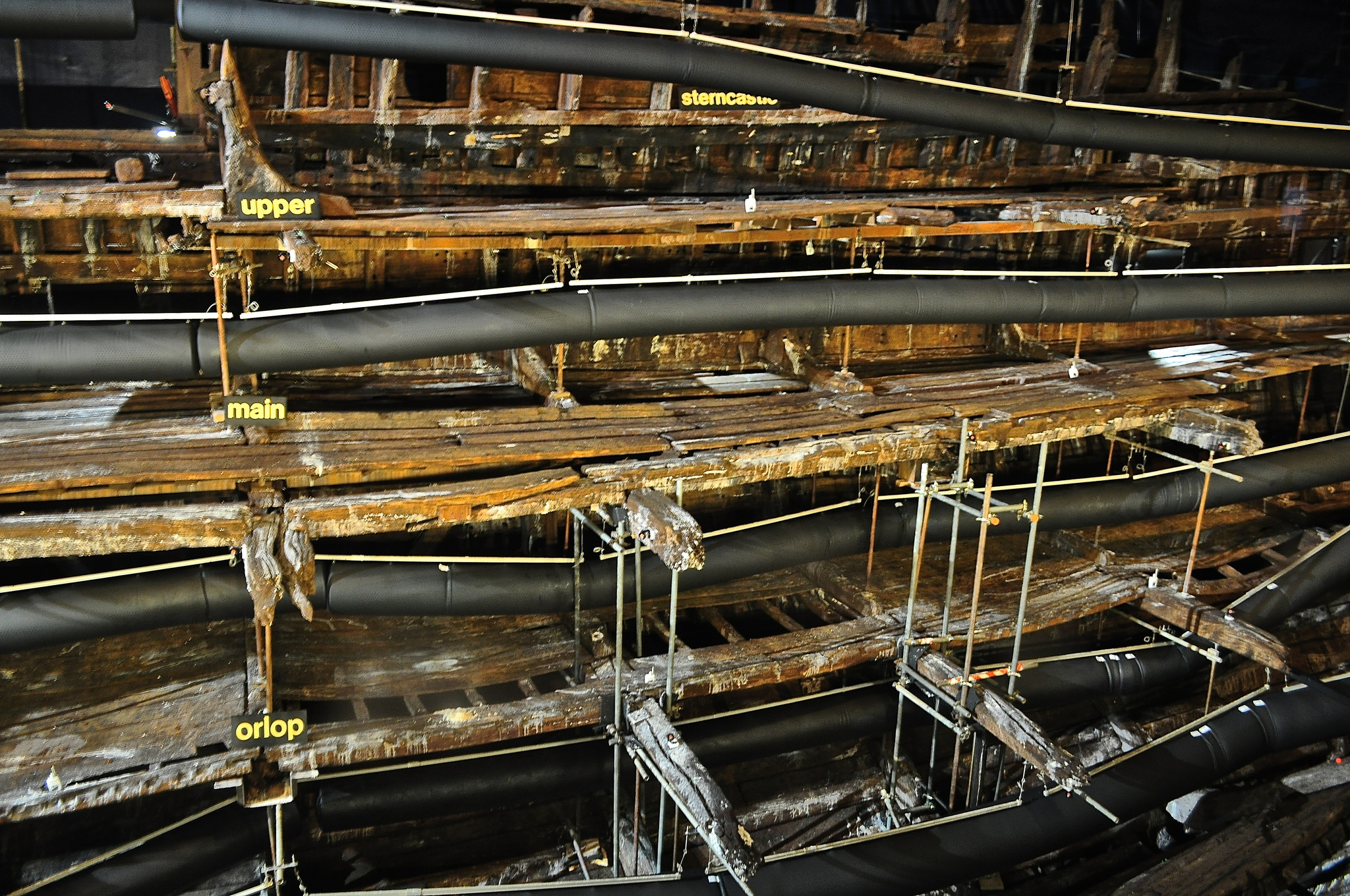On 11th October, 1982, the Mary Rose surfaced to the sounds of klaxons blasting from a myriad of small vessels gathered to watch and from King Henry’s Southsea Castle, a gun salute could be heard. The Mary Rose had come back to the fleet – and the long years of preservation started – chilled water spraying to protect her timbers as she dried out and acclimatised to the environment That process is nearly complete, the sprays have already stopped and I believe next year, even the black tubes you see in my photos will disappear too.