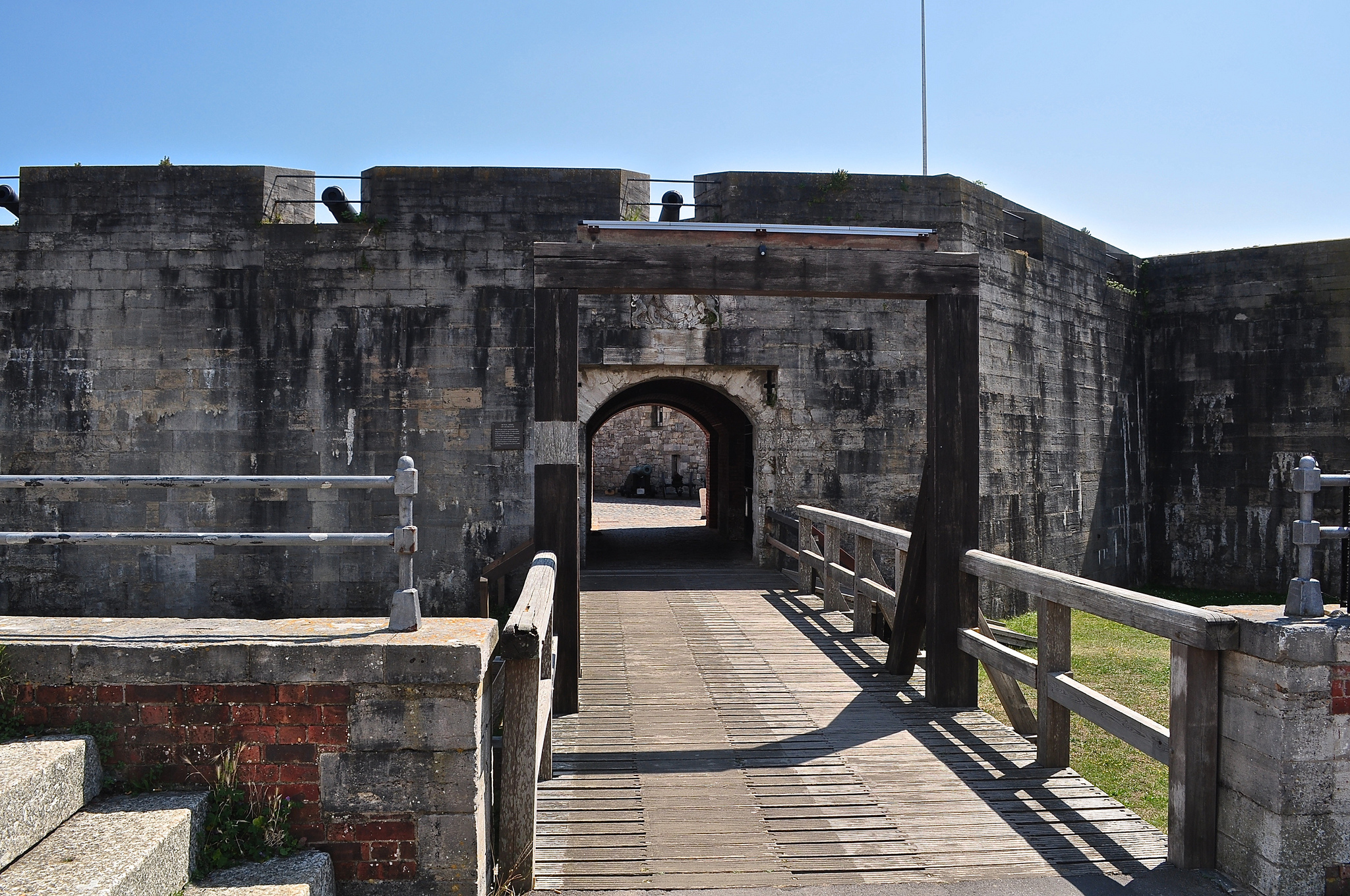 Located on the very tip of the Solent, Hurst Castle is again another defence contructed by Henry VIII although the original Tudor fort has been much added to during the Napoleonic Wars with great wing bastions appearing. It must be one of the most heavily fortified areas in the world, defending the approach to Pompey Dockyard.