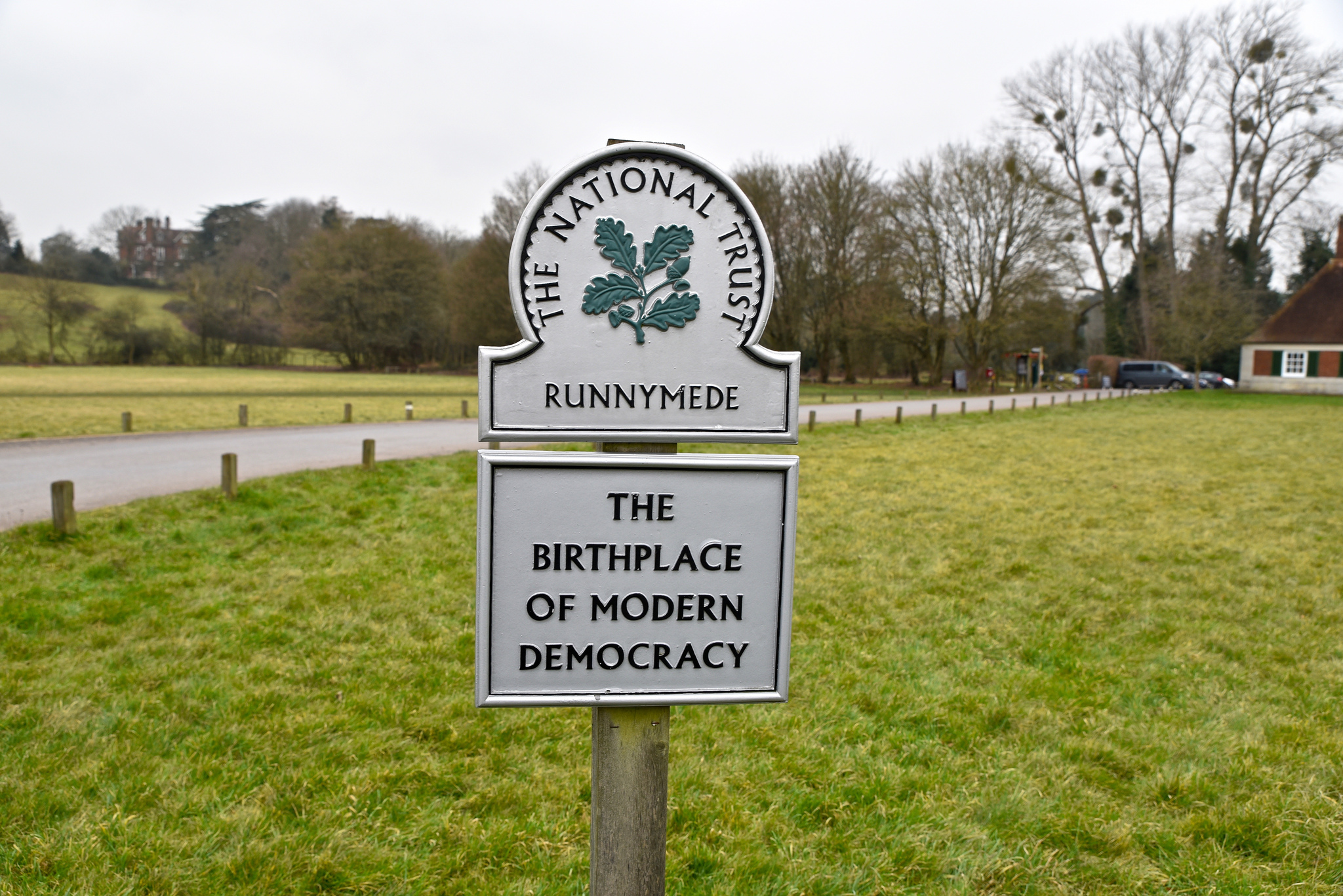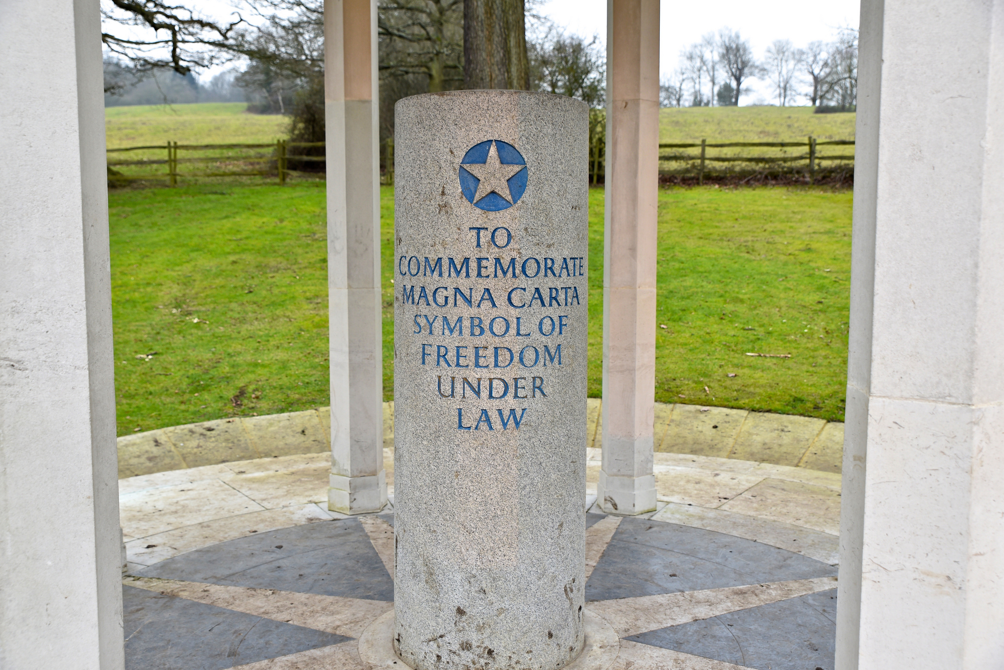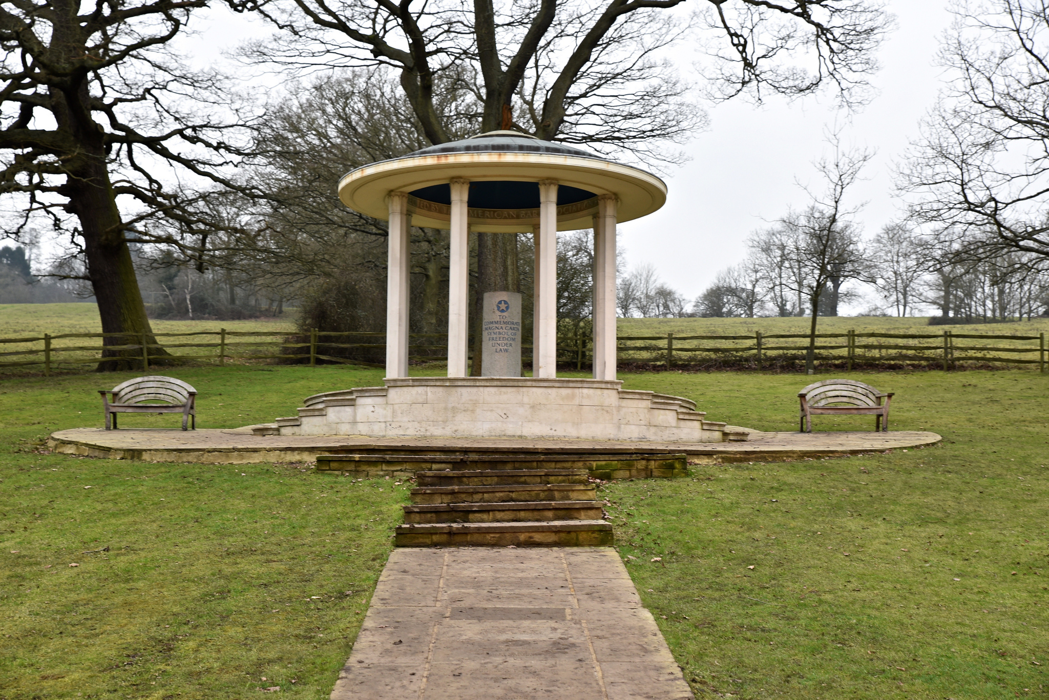 So – whilst waiting for March – a friend and I thought – let’s go to Runnymede – there must be some sort of monument to where Magna Carta was signed. There is indeed a monument, one created and paid for by the American Bar Association and thank goodness they did that. Without it, we would have nothing – just a rather muddy field in the middle of a park. Today, the monument is protected by the National Trust.
