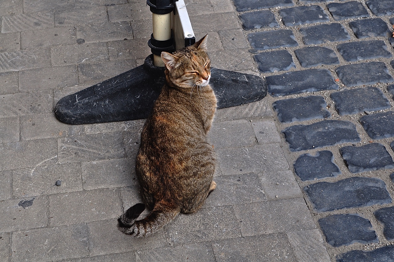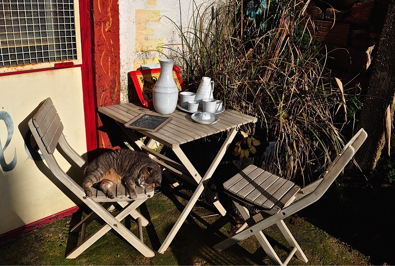 Some may be street stalkers (strays), some may be adopted (you cannot own a cat!), but all seem very well looked after, well fed and open to engagement seemingly without judgement. (Above, dozing resident of Cordes-sur-Ciel, The Tarn, Midi-Pyrénées)
