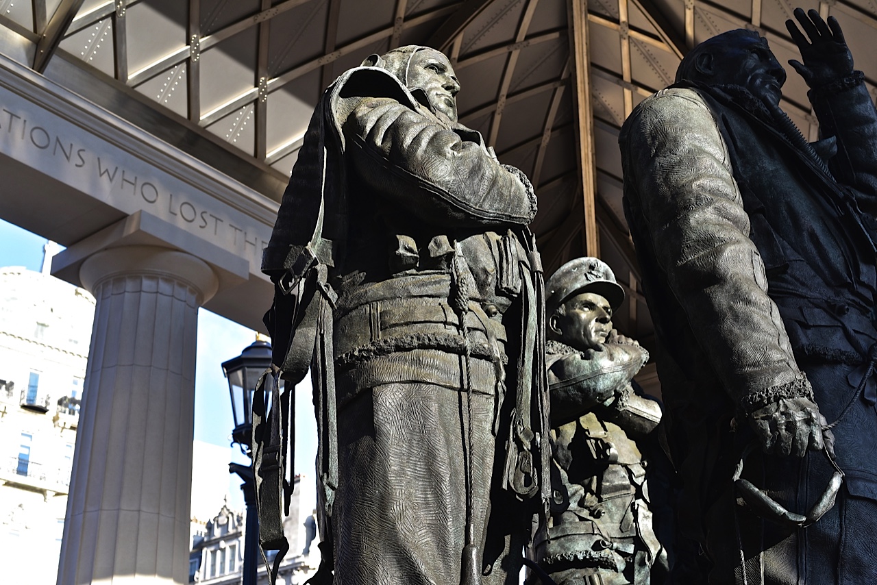 Just along Green Park at Hyde Park Corner, lies one of the most evocative of London’s war memorials in honour of Bomber Command – the Royal Air Force.
