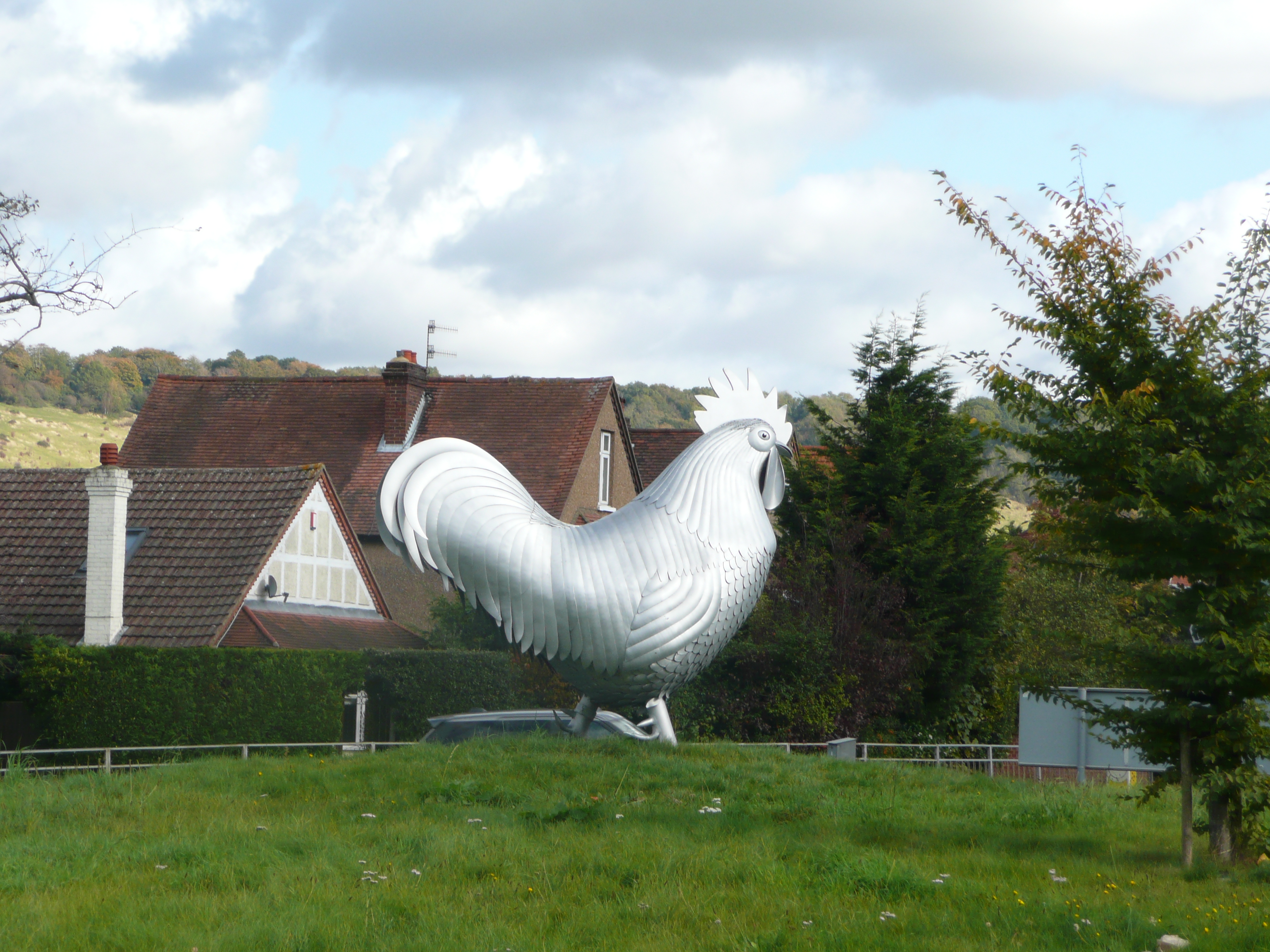 There’s a large silver rooster sitting in a roundabout, just outside of Dorking town centre. Why, you might ask? Well, I’ll do my best to answer.