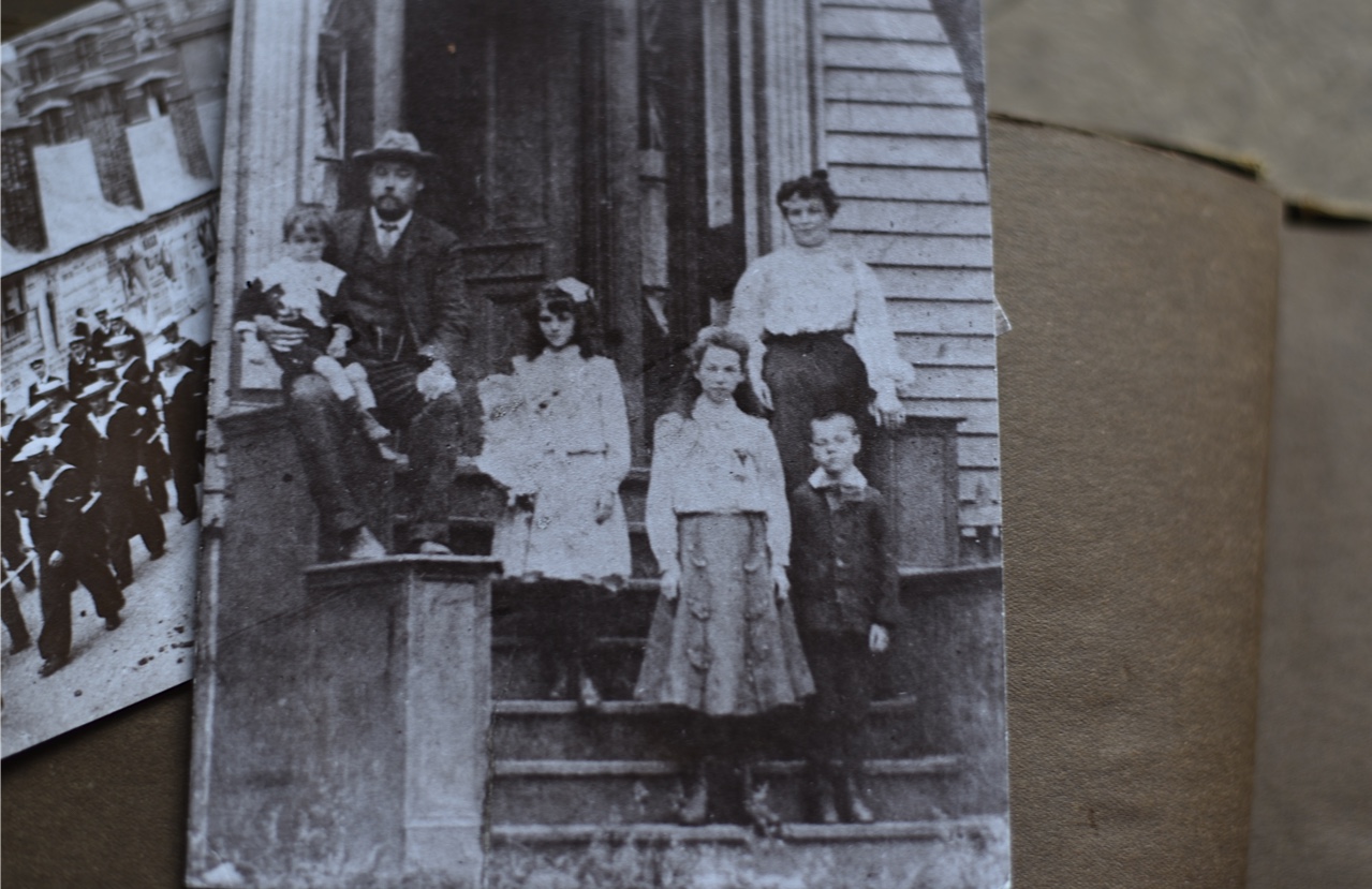 The first is a photograph of a very young Great Aunt and my Grandmother with their family in Nova Scotia, Canada (above). Does this mean that my roots are Canadian or, more to the point probably, was my Great Grandfather working in the Royal Naval Dockyard in Canada? Who are these two male children? Hmm. Tricky Watson.