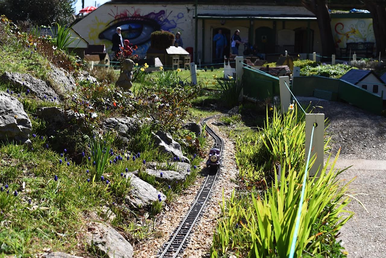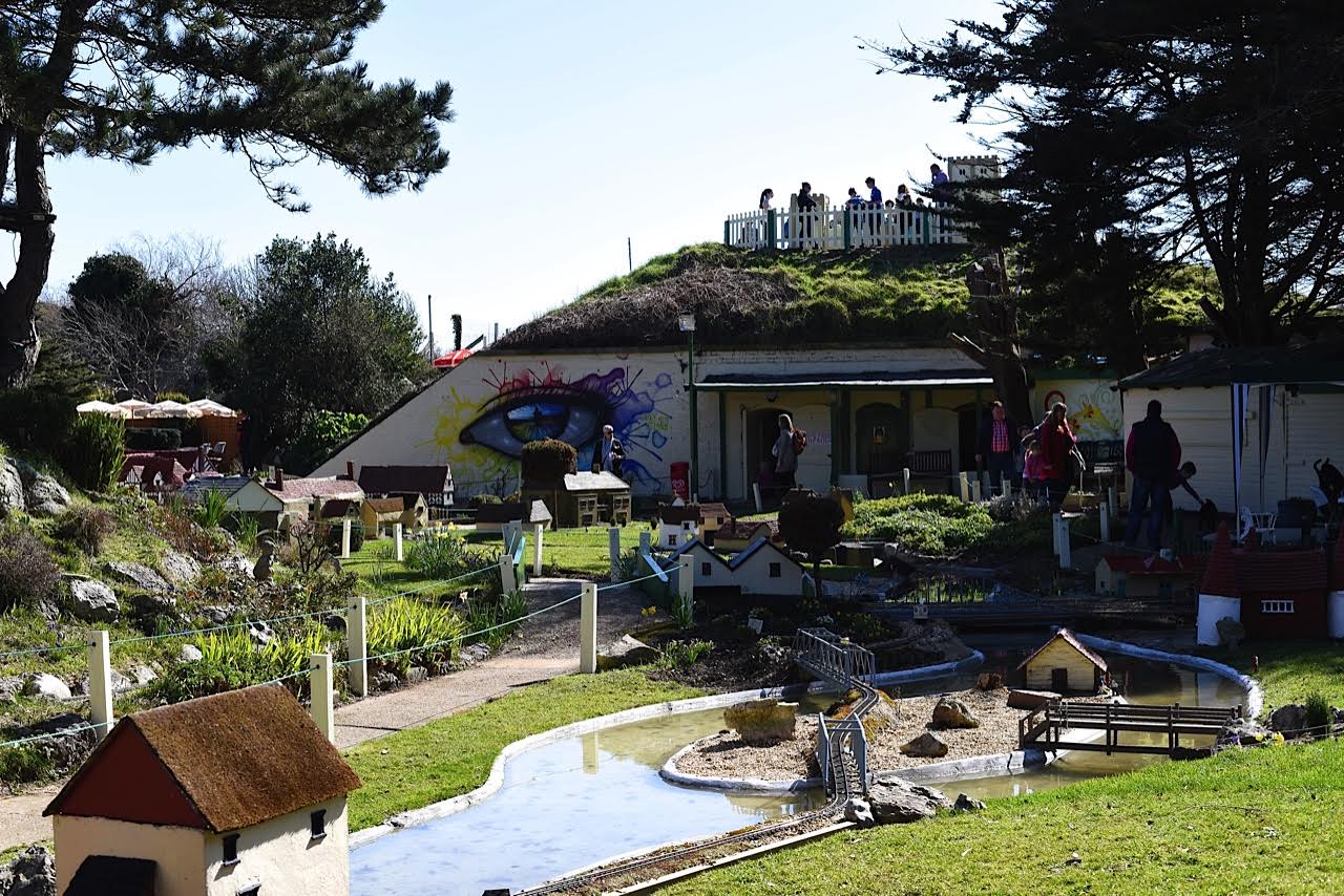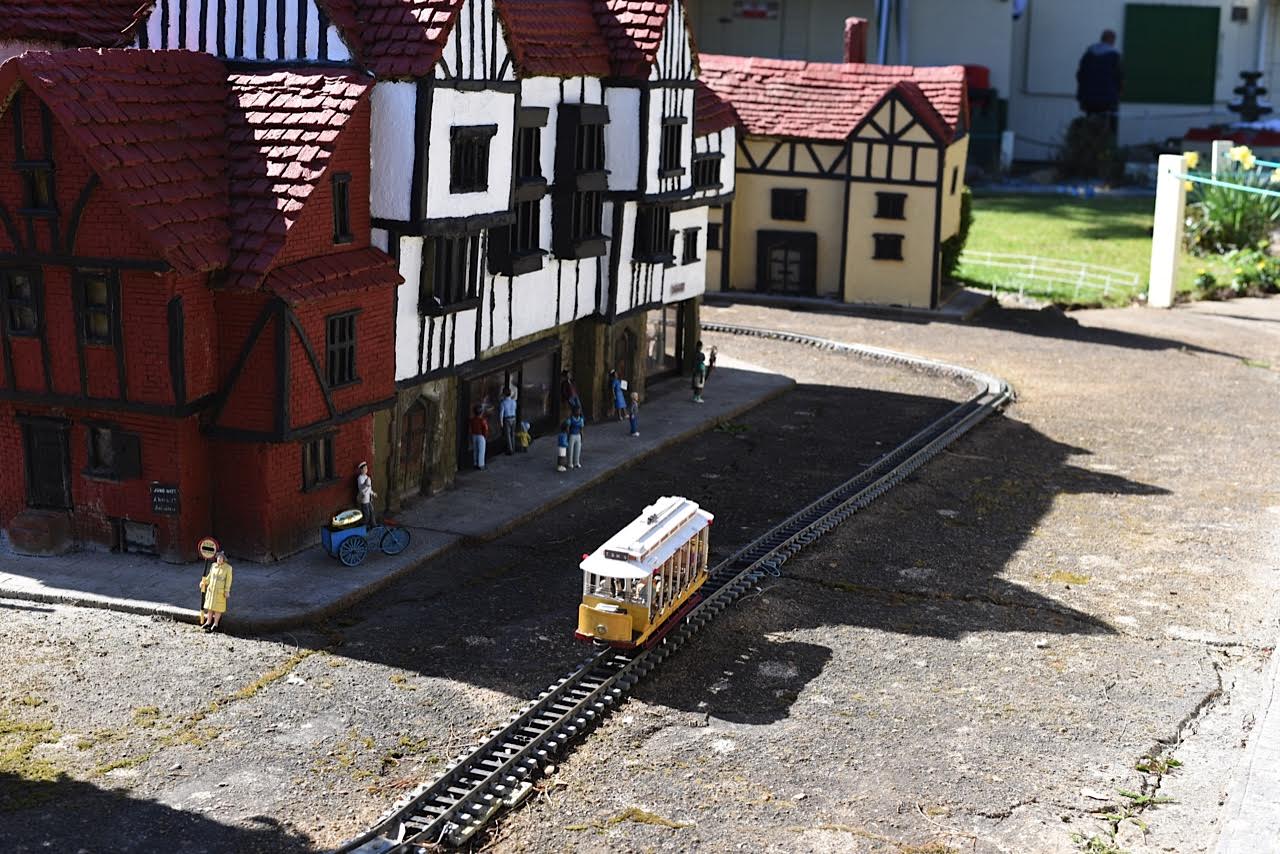 The Model Village is a 1930’s world in miniature and lies in landscaped gardens in part of the old Victorian Lumps Fort, near the Rose Gardens, just beyond Canoe Lake.  These classic buildings display an old-world charm and are enlivened by a large scale electric garden railway (maybe five train sets, inter-linking with each other), an 100 ft rifleman’s tunnel (residual part of the fort), a 10,000 gallon waterfall and stream and a small mechanical toy museum.